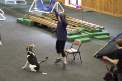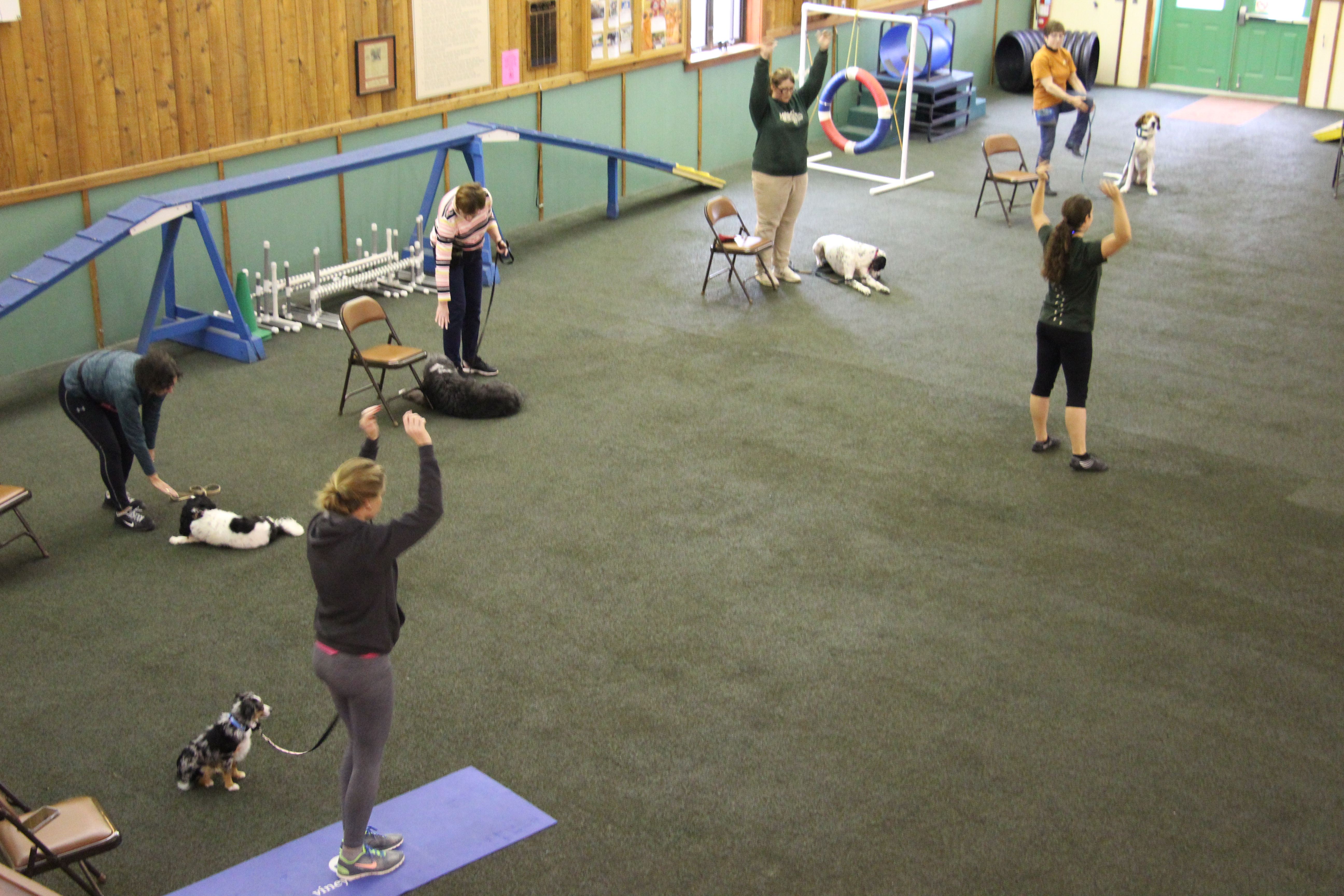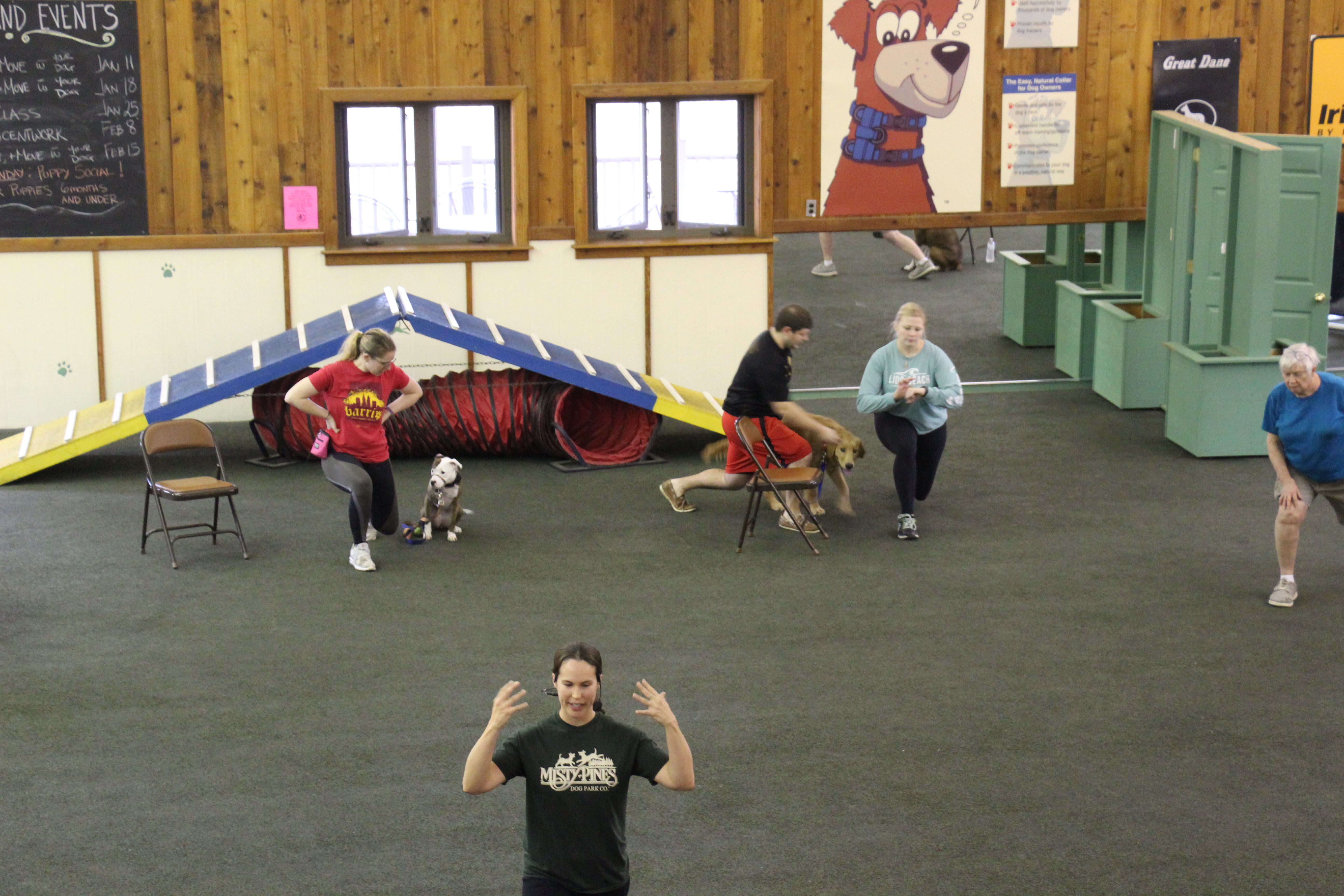 Class will begin with a warm-up routine for humans and dogs. Then you will perform exercises while training your dog in various behaviors like sit, down, stay, watch, play and the agility obstacles. Exercises will include your dog being active while for some your dog will be stationary. The human exercises include body-weight, cardio and yoga poses. Your instructor will show the movements with modifications to be more challenging or less challenging so everyone of every fitness level can participate and succeed! This is an all levels and extra fun class that you and your dog will work on building your body and bond through movement, training and agility obstacles!