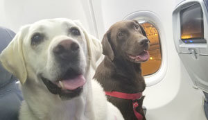 Last year we were devastated by hurricanes Irma and Maria. Both were category 5 hurricanes and thankfully my wife and 2 yr old were able to leave before they hit. I stayed behind with my labs. We survived and after 30 days without power or a generator decided it was time to leave until we had power returned. I was able to get us out, and because of your training, Sophie and Eddie did great on our travels.”
