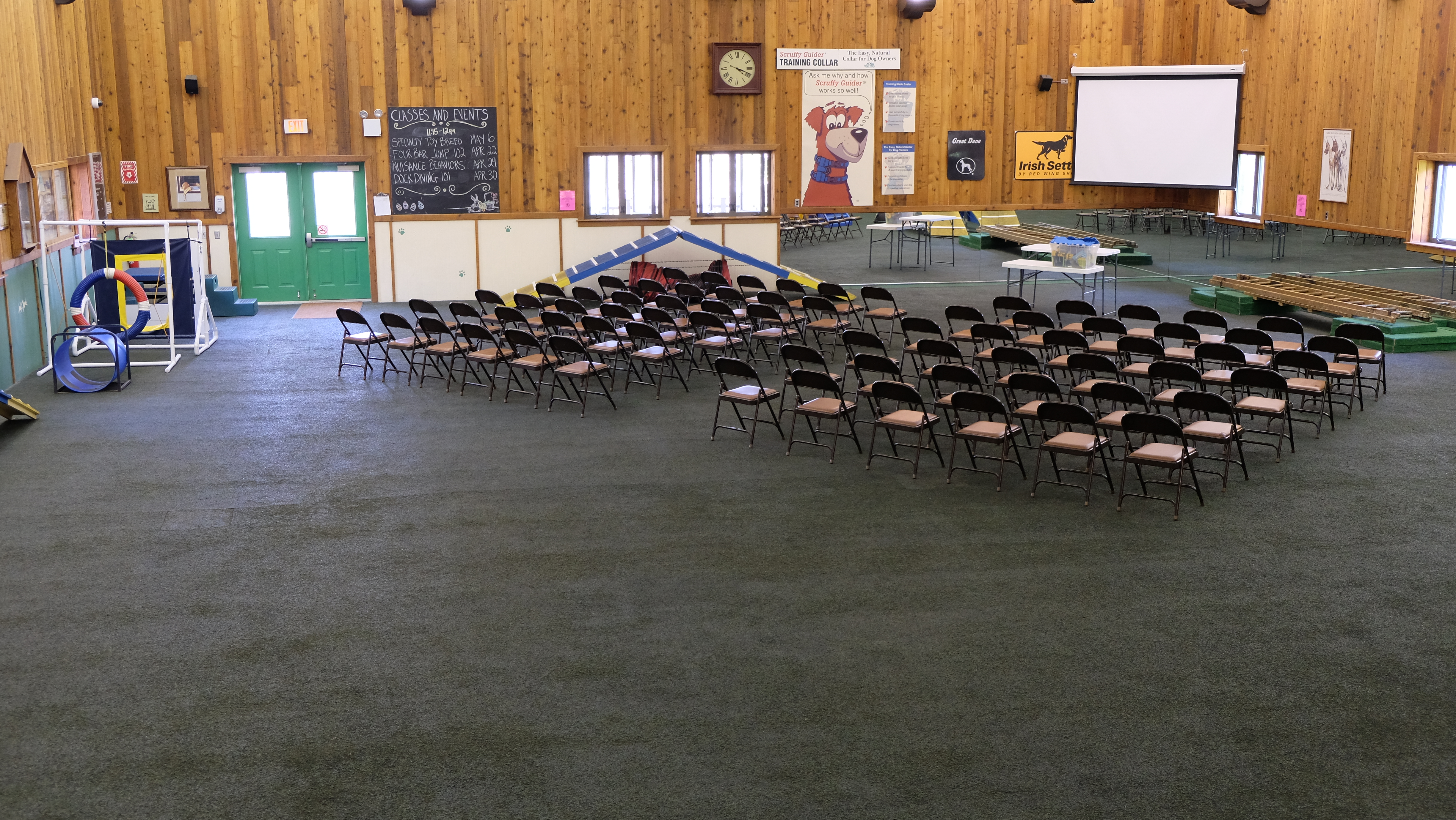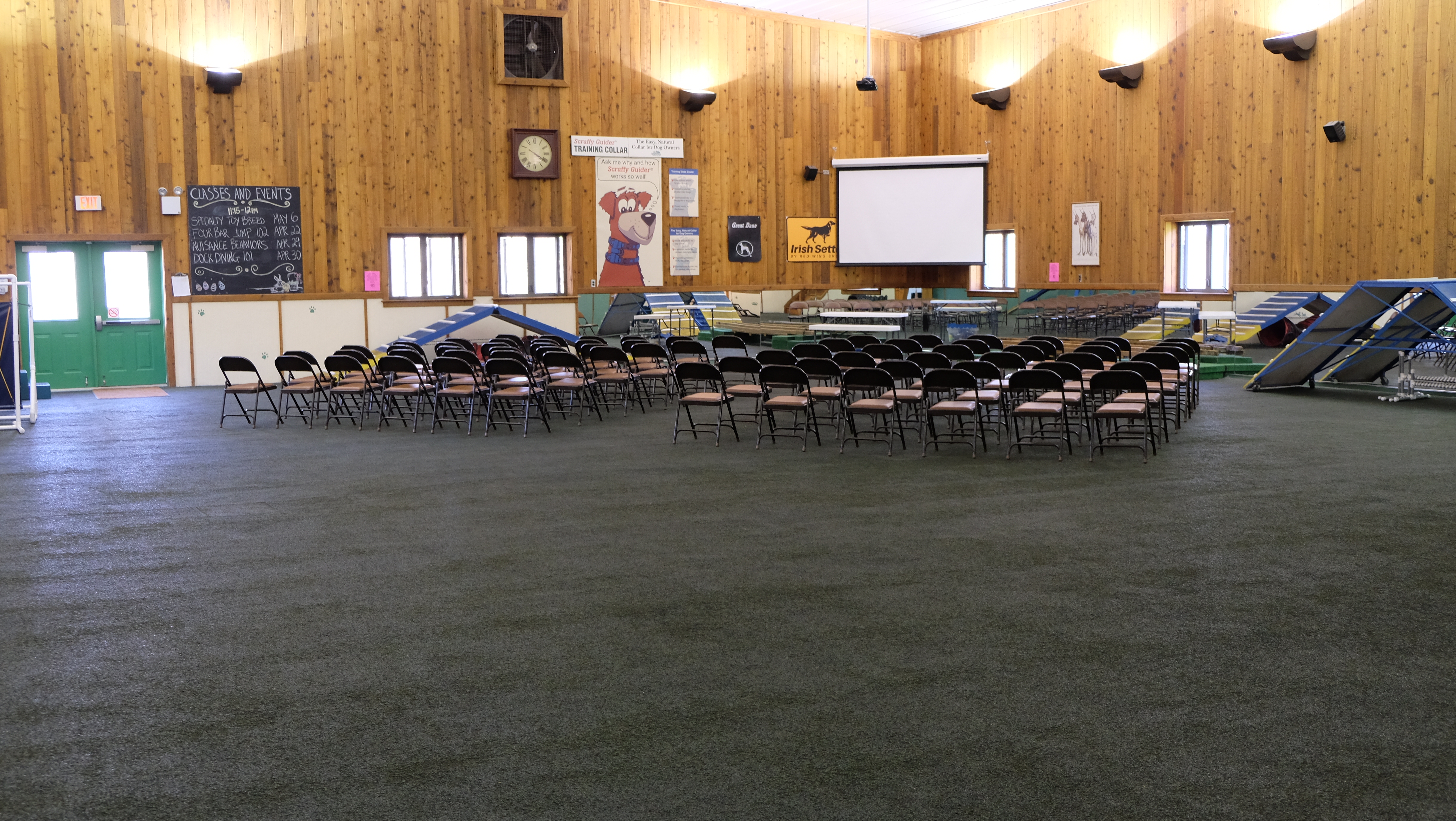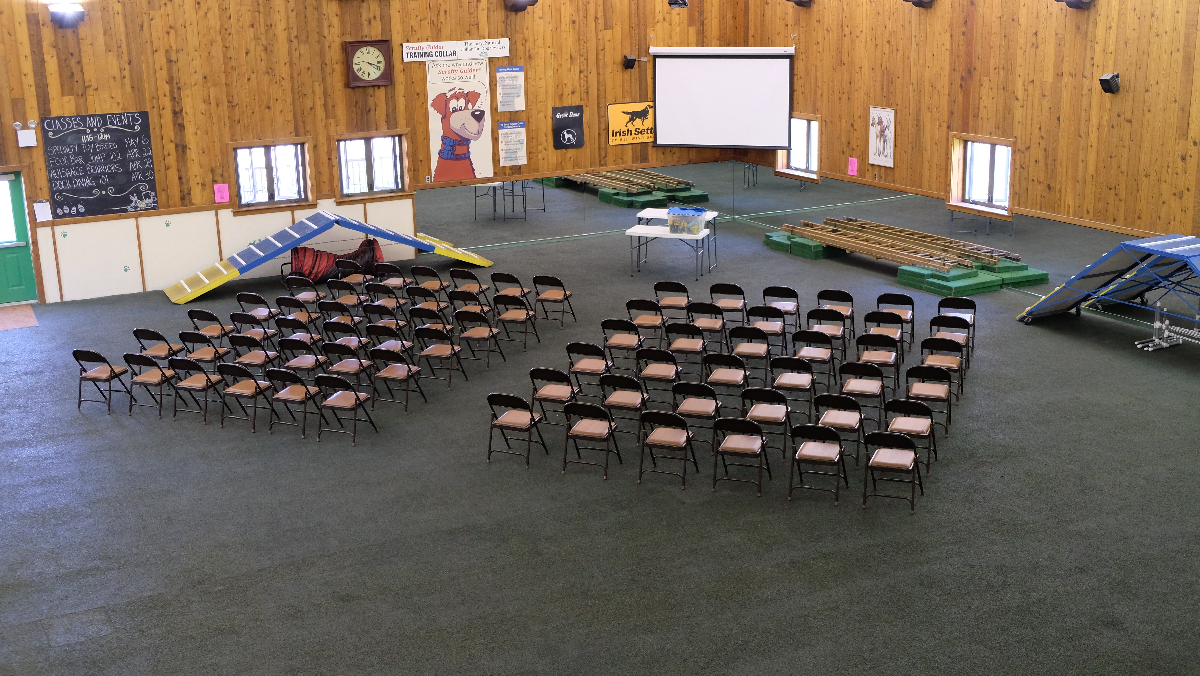 Our Dog Training Center offers over 5,000 sq. ft of indoor training space on a rubber SAF DEK™ floor as well as a large balcony area suitable for meetings and parties.